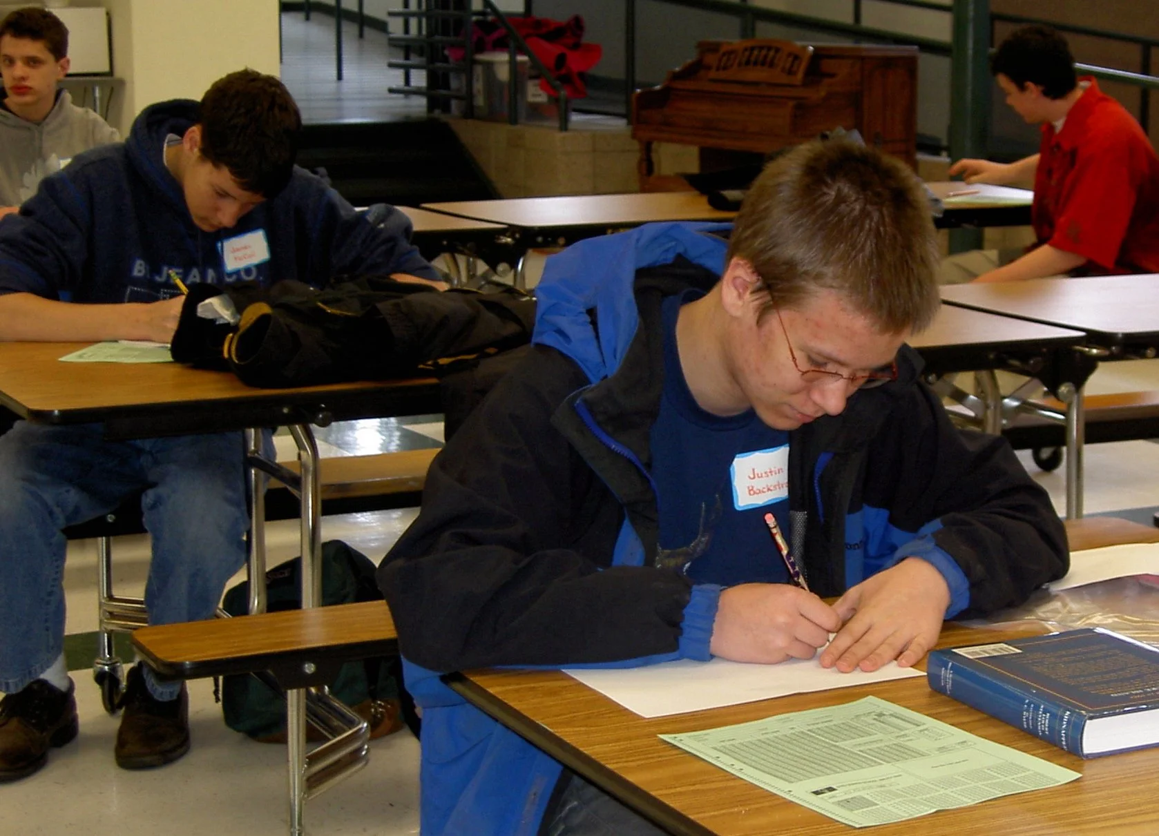 As a home school student with T.E.A.C.H. he was required to test every other year, but we had him test every year.